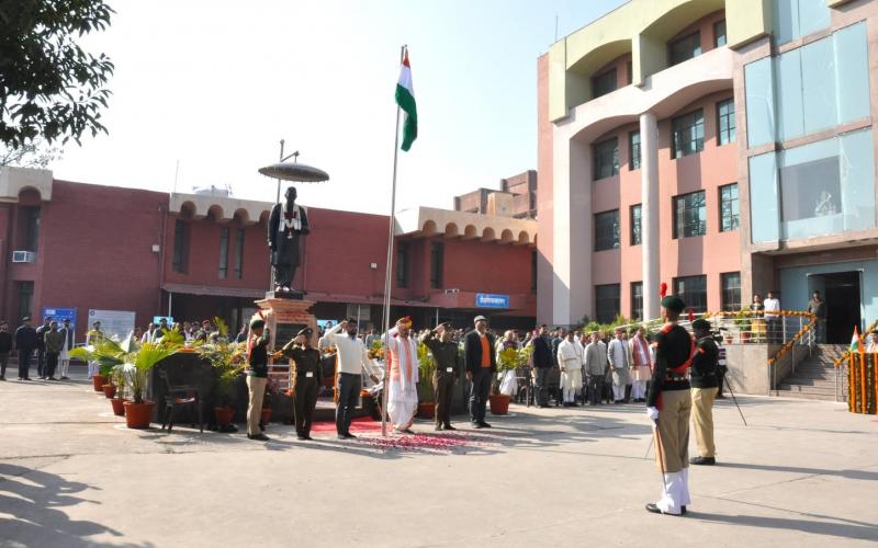 • The 77th Republic Day was celebrated at the University campus with great enthusiasm, dignity, and a spirit of patriotism. On this occasion, the Hon’ble Vice-Chancellor, Prof. Murli Manohar Pathak, paid floral tributes to the statue of Bharat Ratna, former Prime Minister Shri Lal Bahadur Shastri, and unfurled the National Flag. This was followed by the collective singing of the National Anthem and a Vedic invocation presented by Prof. Sundar Narayan Jha.