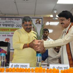 कार्यक्रम का शुभारम्भ वैदिक मंगलध्वनि के बीच दीपप्रज्वलन एवं मां सरस्वती वंदना के साथ हुआ। माननीय कुलपति प्रो. मुरलीमनोहर पाठक जी ने मुख्य अतिथि एवं विशिष्ट अतिथियों का स्वागत करते हुए कहा कि सेवा पखवाड़ा समाज और राष्ट्र के प्रति जिम्मेदारी का बोध कराने वाला अभियान है। कार्यक्रम संयोजिका प्रो. रचना वर्मा मोहन ने सेवा पखवाड़े की रूपरेखा प्रस्तुत करते हुए कहा “सेवा ही संकल्प, राष्ट्र प्रथम ही प्रेरणा”।